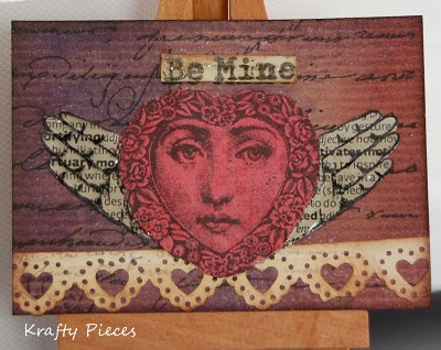 The stamps are gorgeous and were a prize from www.joangewaert.nl - pop on over to the website, she's got some lovely pieces! The atc - the background was created using acryllic paint, the butterfly from the set stamped over, the image and saying were stamped onto text and patterned paper and adhered with a bit of bling added.